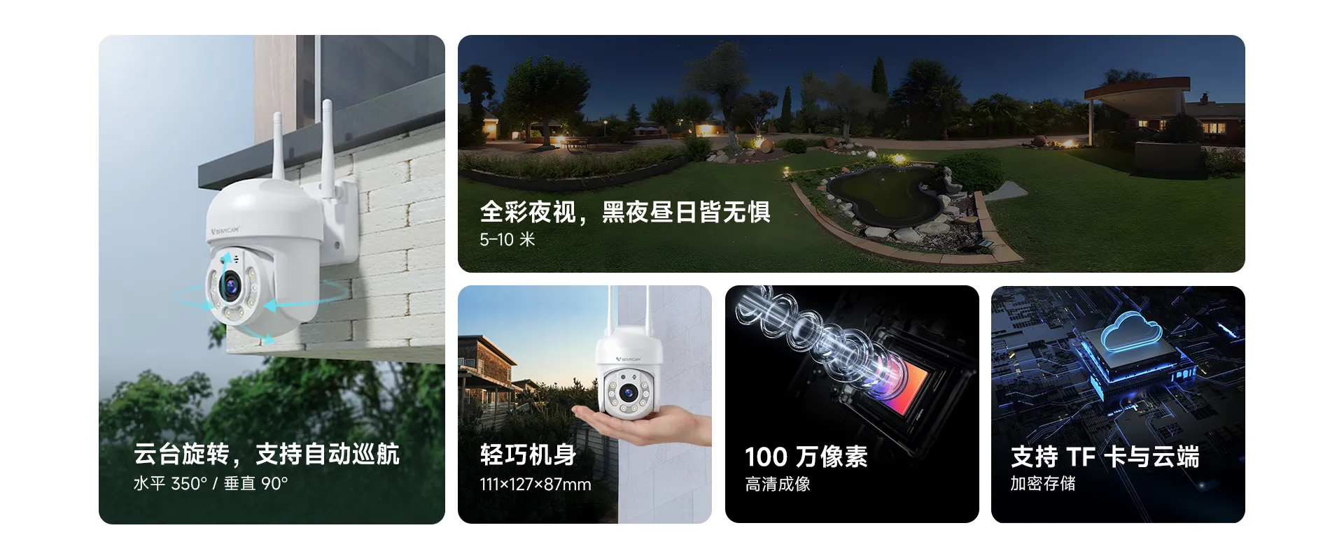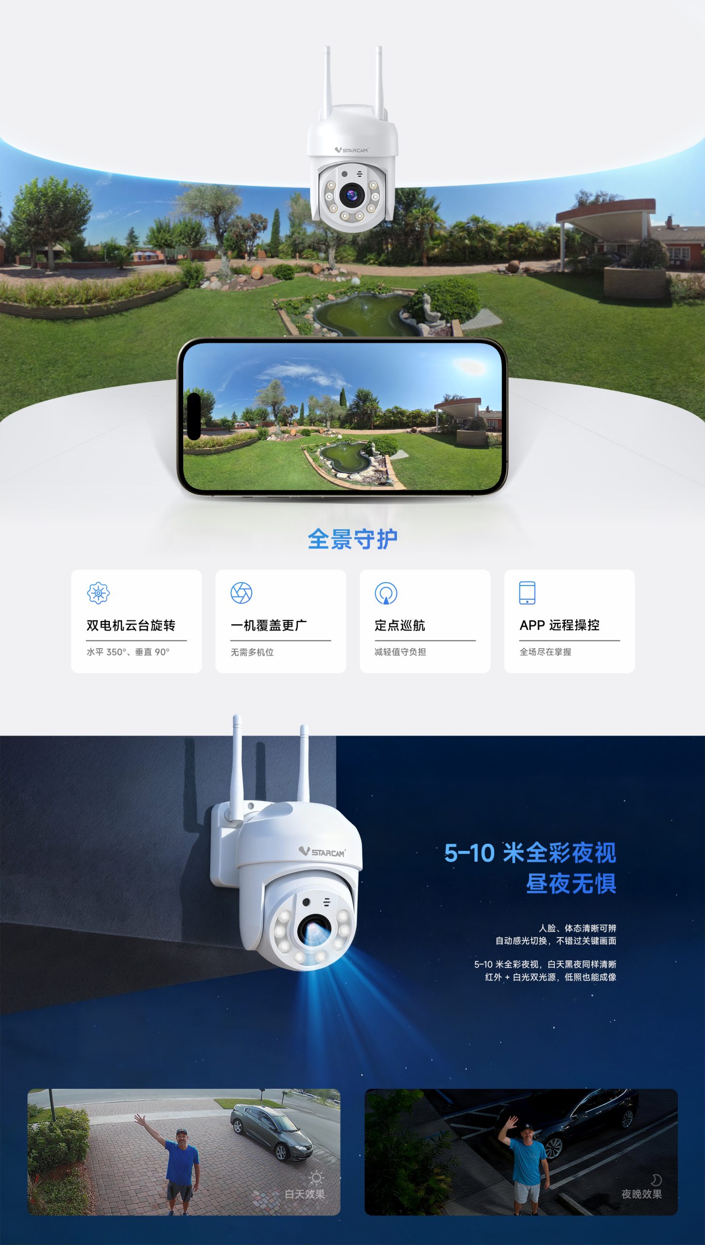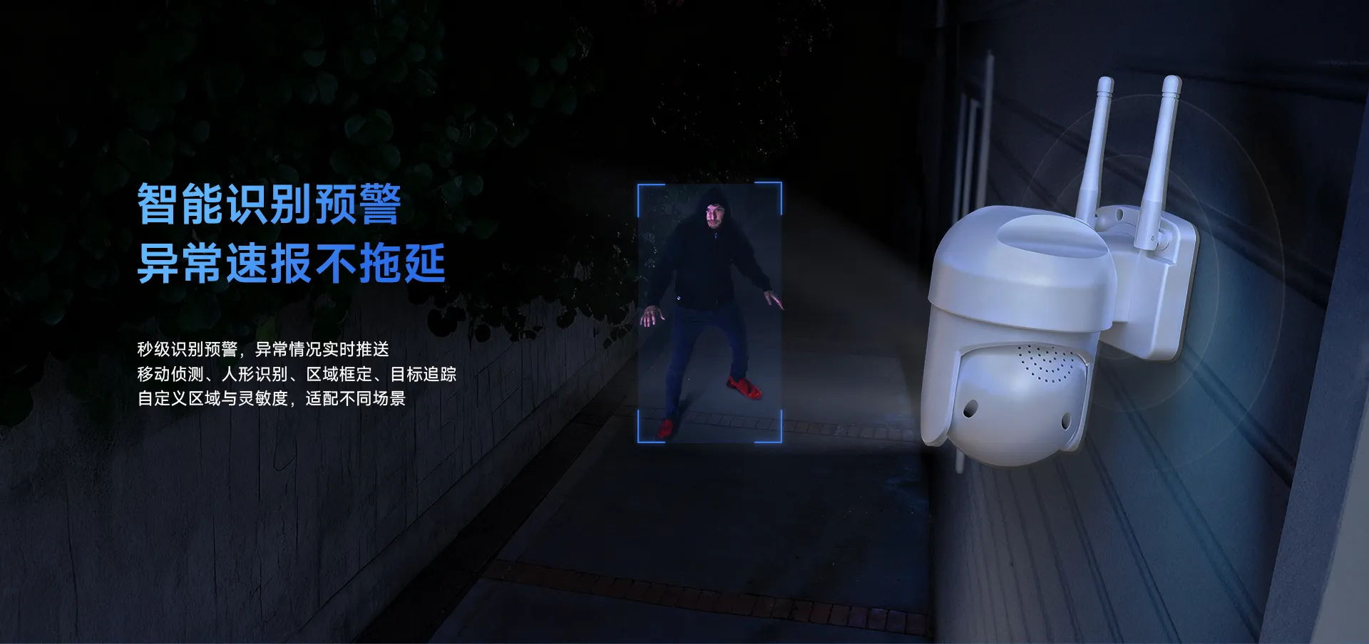 支持移动侦测,人形侦测,人形框定,区域侦测,人形追踪 |